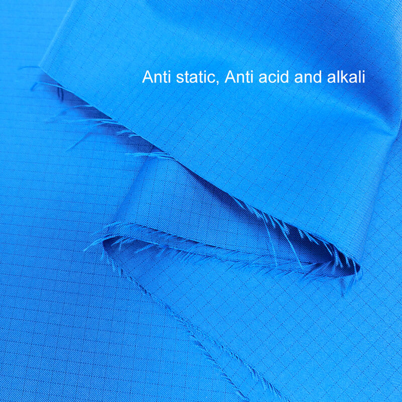 | Nombre del producto: | Tela alcalina ácida antiestática azul ESD | Material: | 98% Poliéster + 2% Fibra de Carbono |